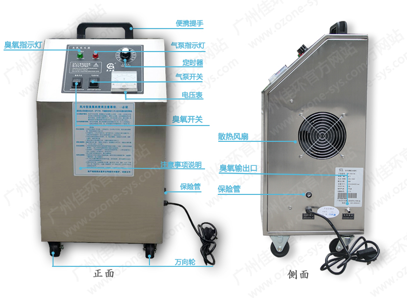 4:禁止将臭氧机放在消毒区内工作,为了工作的安全,设备应有单独工作区,再用硅胶管将臭氧气体输送到消毒或化学反应区。
